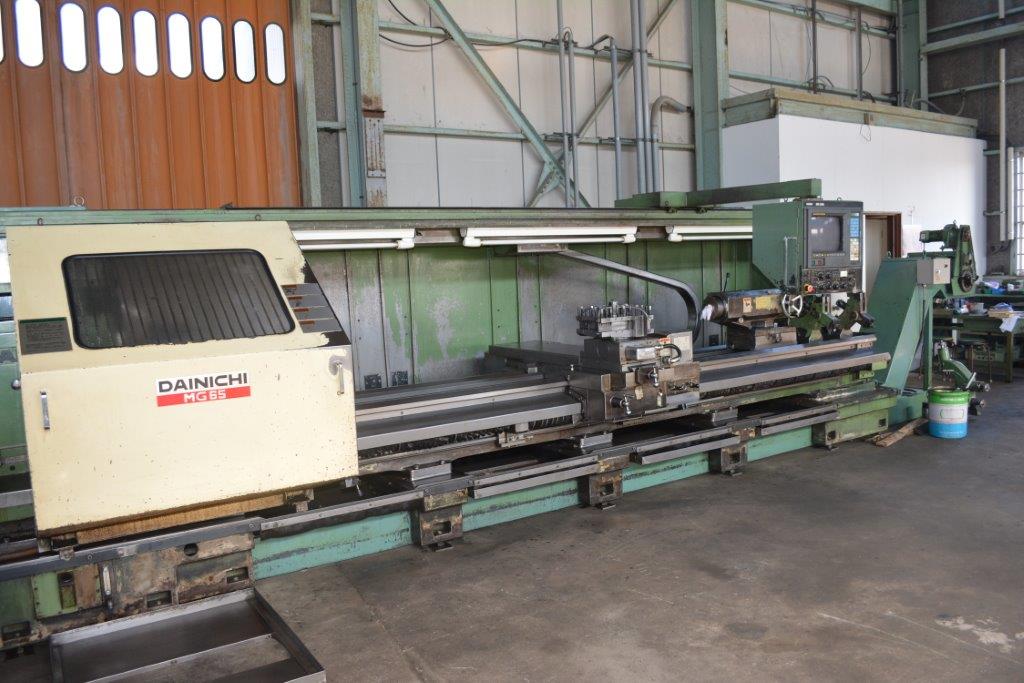 F-15T φ650×4000 12吋三爪チャック チップコン 主軸貫通穴φ85 固定振止2個 移動振止1個機番27398