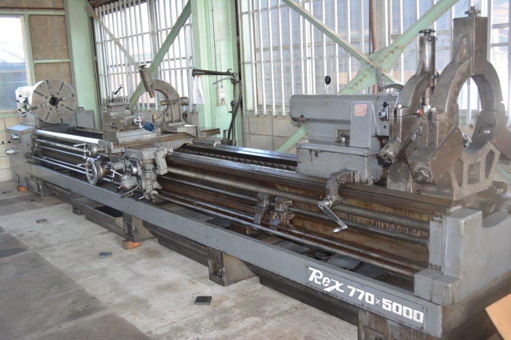 φ770×5000 往復台上の振りφ530 貫通穴φ104 φ600四爪チャック 固定振止2個 移動振止1個 機番61904