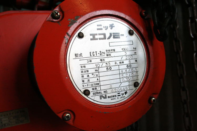 <売約済み> 1ton トロリー式 2点ボタン 揚程3m #8209497