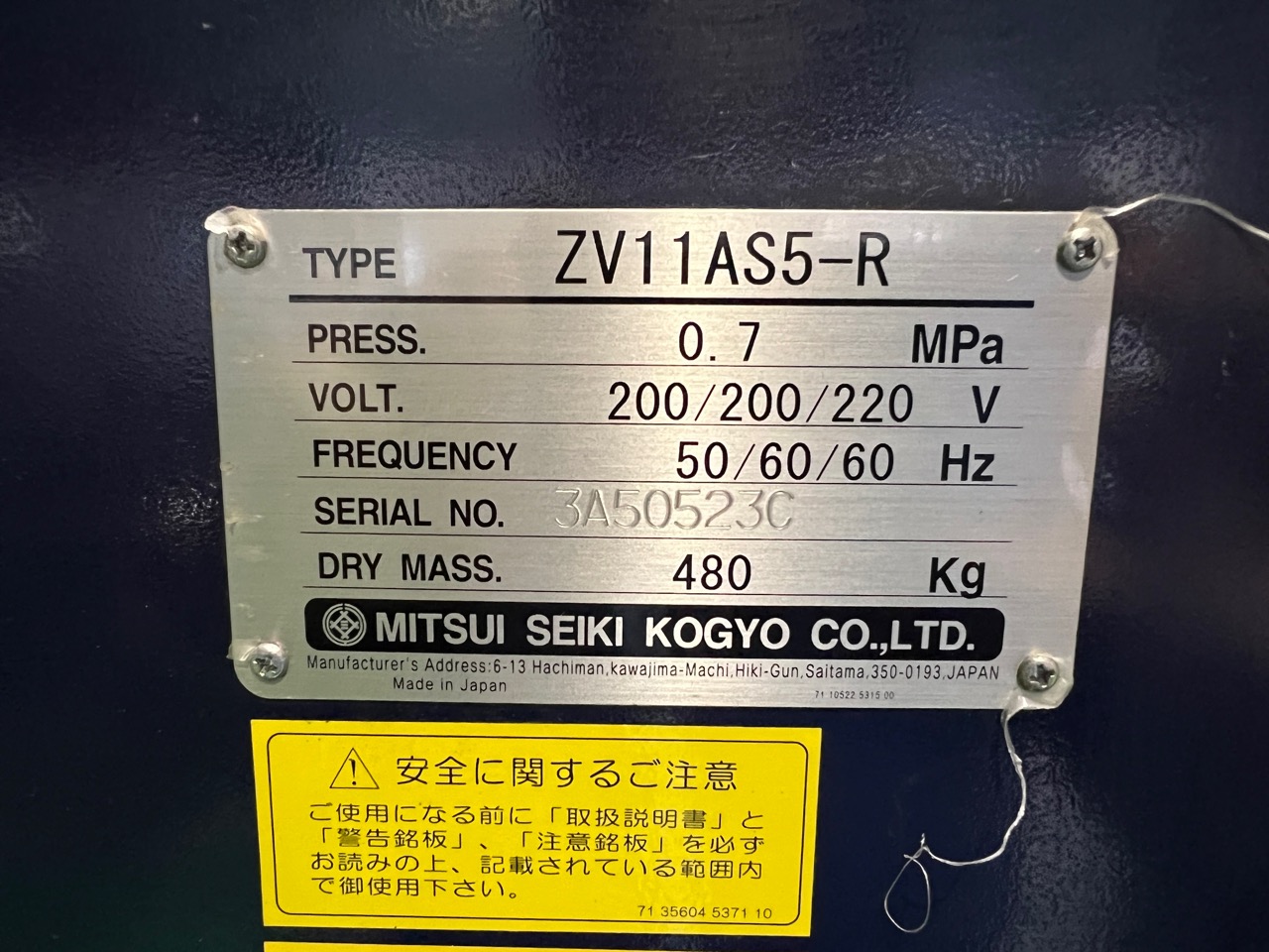 スクリュー インバータ制御 11KW(15馬力) ドライヤー内蔵 12017Hr 製番3A50523C