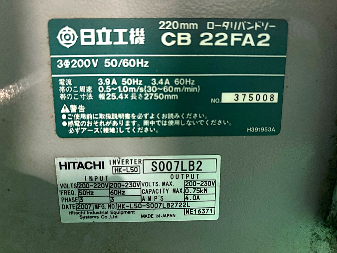 切断能力:φ220 機番375008
